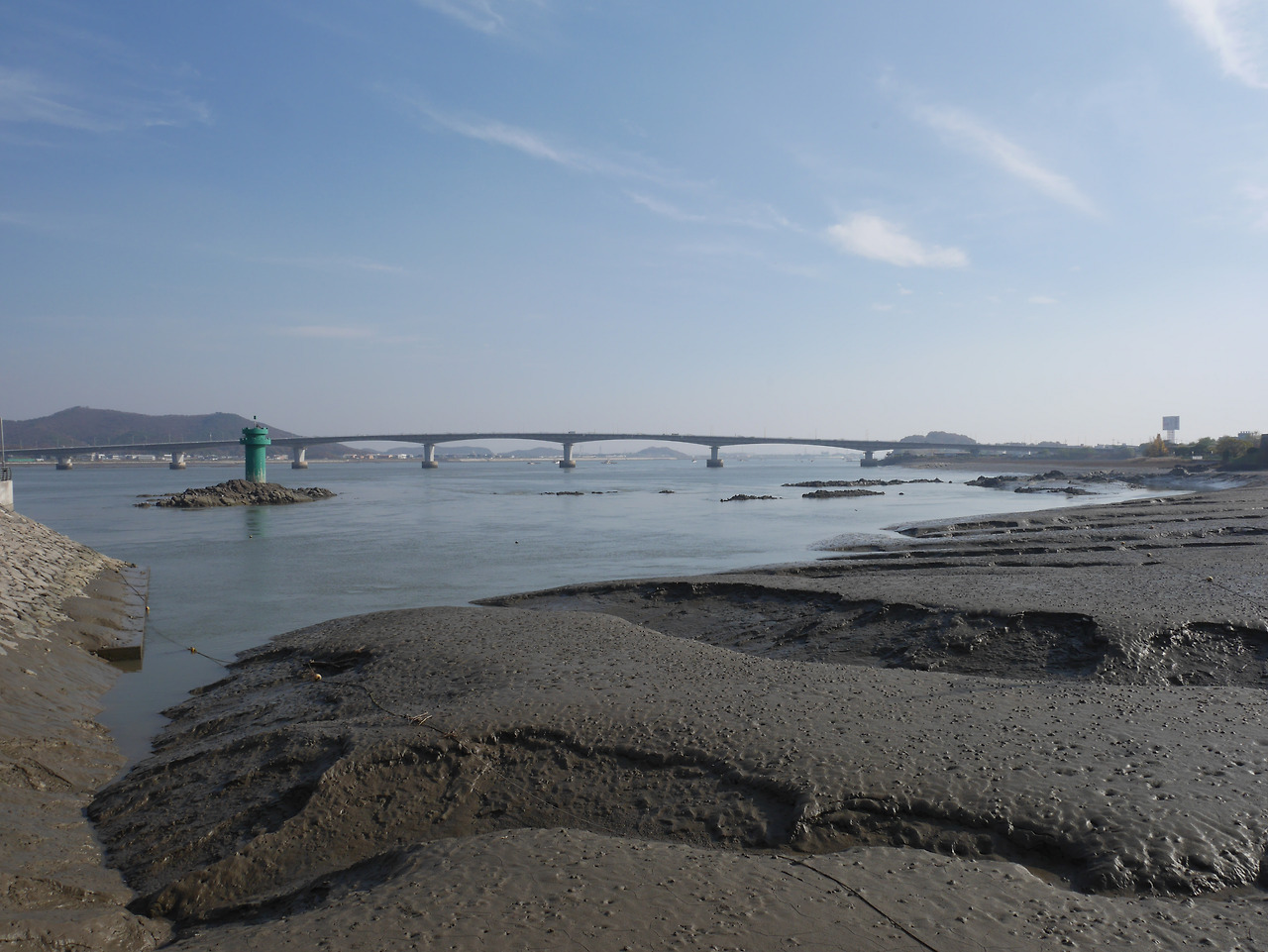초지진 가는 길목에 강화초지대교와 바닷물이 멀리 달아난 갯펄이 보였다.