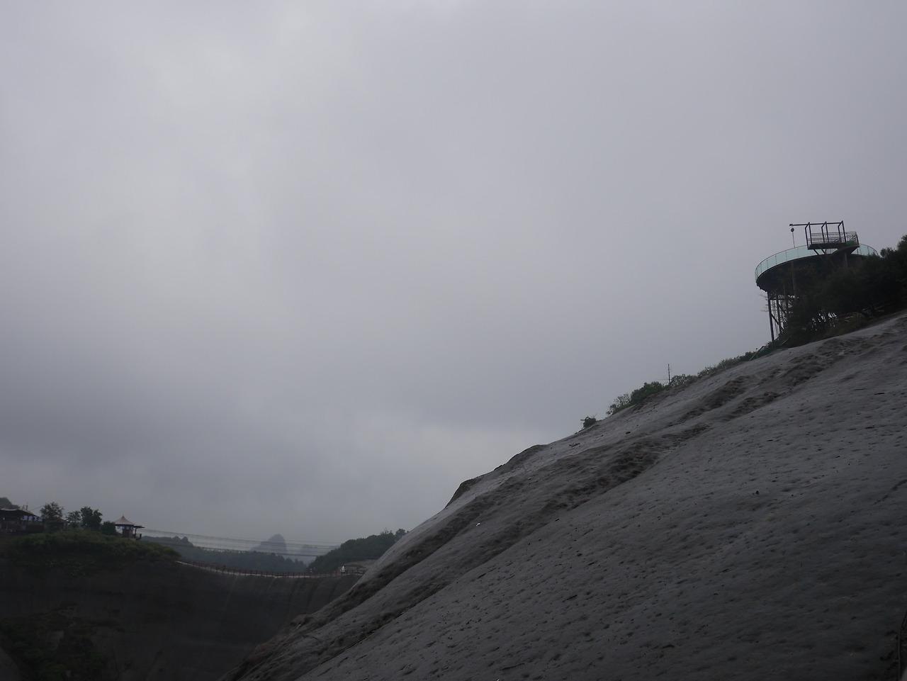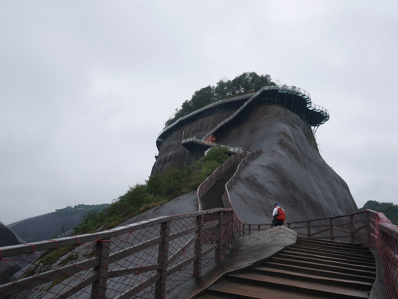 바위 위 칼날같은 부분에 걸쳐진 잔도.
