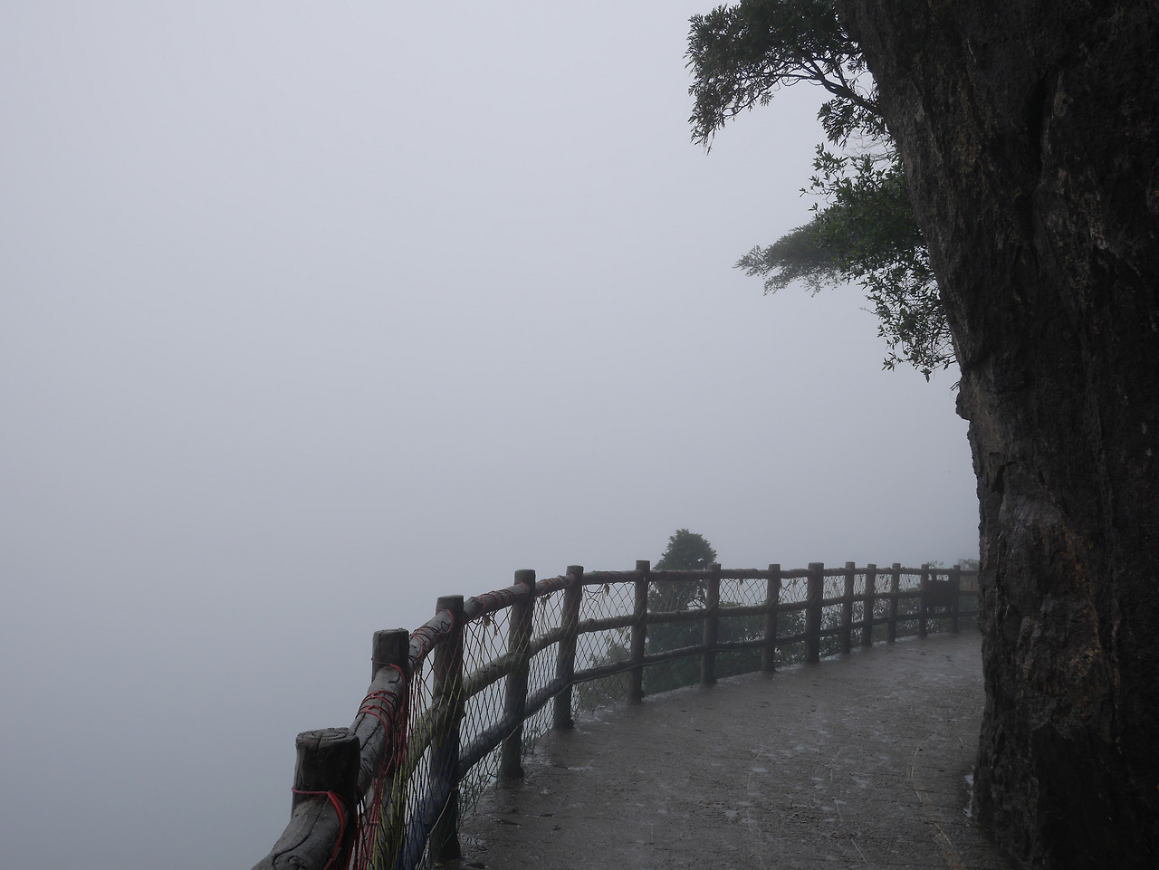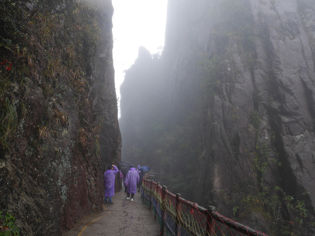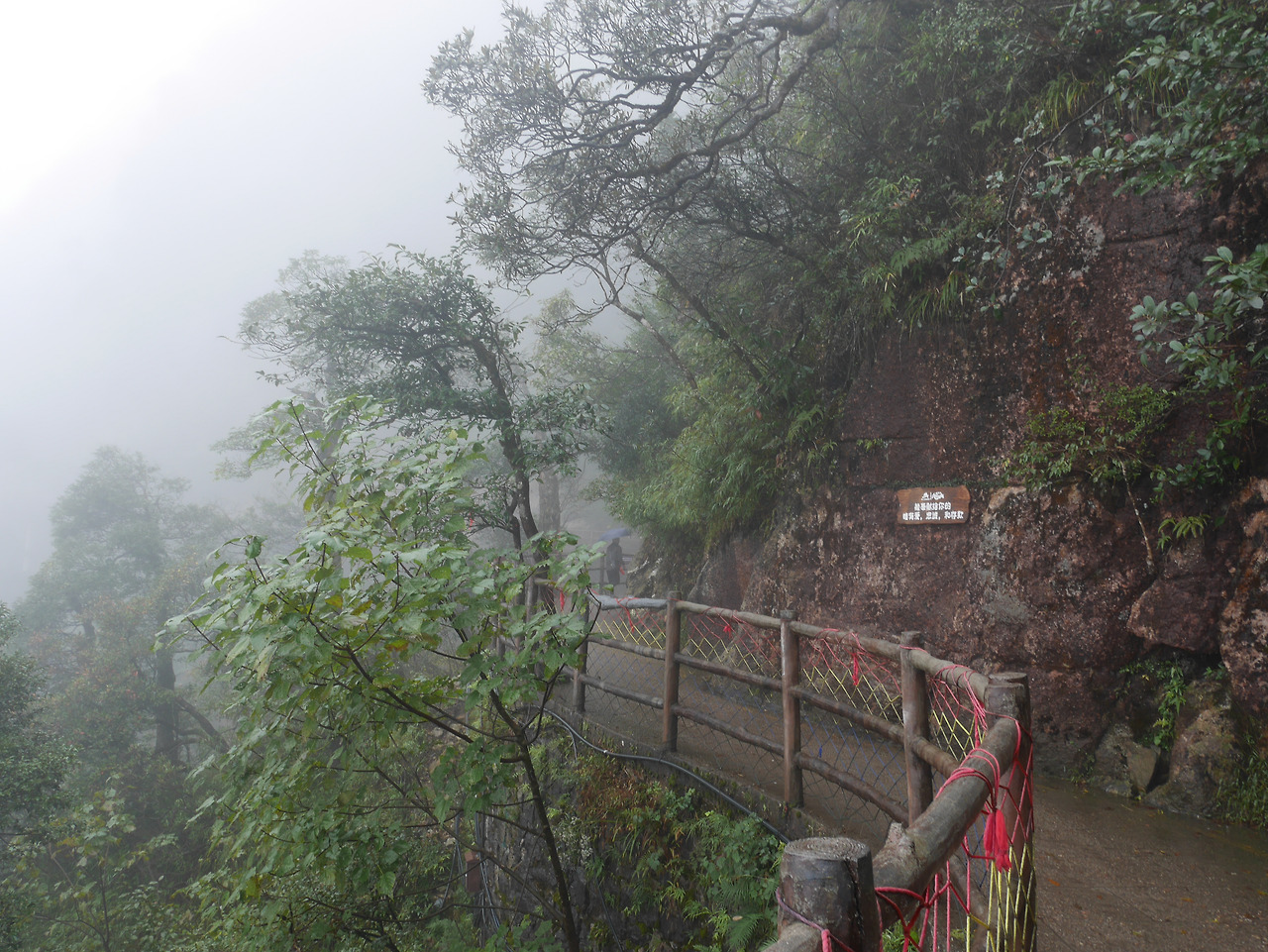 셔틀버스로 들어가 케이블카를 타고 해발 1600m 망산 오지봉으로 올랐다. 8인승 케이블카에서 발아래 펼쳐지는 자연경관을 감상할 수 있다고 하였으나 간간히 등산로와 작은 폭포가 보였지만 비와 안개로 전혀 내려다 볼 수 없었다. 망산은 중국 최초 무장애관광지로 여러 산악단체의 상을 받았다고 자랑하였다. 한글 설명판에 의하면 망산. 오지봉 관광지구는 전처우시 이장현에 위치한 관광지구로 지붕비도. 운잔만보. 금편람성. 동문영상. 마천망월.천대탐험. 관음예불. 만수기복 등 주변의 산봉우리와 나무에 갖가지 명칭을 붙혀 놓아 자연에 그럴듯한 이름을 붙이기 좋아하는 중국인 특유의 모습을 볼 수 있었다. 잔도가 잘 조성되어 노약자도 신비스러운 자연 경관을 감상하며 걸을 수 있다고 하여 우리 일행 모두 가이드를 따라 출발하였으나 안개에 가려 전망은 볼 수 없었다. 비는 계속 내리니 신발도 젖기 시작하여 입구에는 파는 1회용 장화를 하나 살껄.... 하산한 후 나도 20위안을 주고 한 컬레 샀는데 신을 기회는 없었다. 곳곳에 요족소녀가 두 팔을 벌려 팔방의 손님들을 반가히 맞이한다는 요대전망. 가지와 잎이 무성하고 끊임없이 자라며 이곳에서 복을 빈다는 기복신수. 회곡신수 거꾸로 꽂은 붓과 같다는 묘필생화, 팔괘대. 남창봉기의 인물 주덕의 소도 등 곳곳에 전설과 역사가 담긴 곳들이 안개 속의 흐릿한 실루엣만 보이니 안타까웠다. 망산의 하이라이트는 사람의 5손가락을 펼친 V자 모양의 오지봉이라고 하였다. 우리는 이곳까지만 보고 하산하기로 하여 잠시 안개가 걷히기를 기다렸으나 전혀 그 모습을 볼 수 없어 아쉬움을 뒤로 하고 산위에 설치된 에스켈리이터로 하산하고 맞은 편의 금개구리가 관음보살에게 절한다는 금섬배불을 뒤로 하고 케이블카를 탔다. 신비한 자연 경관을 기대하며 망산을 올랐으나 자연이 허락하지 않았다. 산수화같은 경관은 볼 수 없었지만 안개 속을 마치 신선처럼 걸을 수 있었다. 선계에서 잠시 머문 것만으로 만족하고 숙소인 망산산림온천으로 향하였다. 온천은 다양한 시설을 갖춘 대규모 시설이었지만 피곤하여 일찍 잠자리에 들었다. |