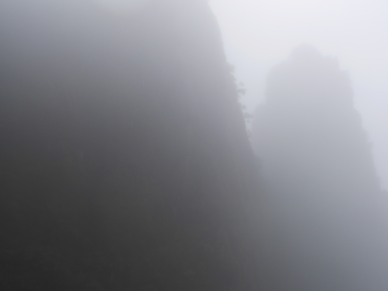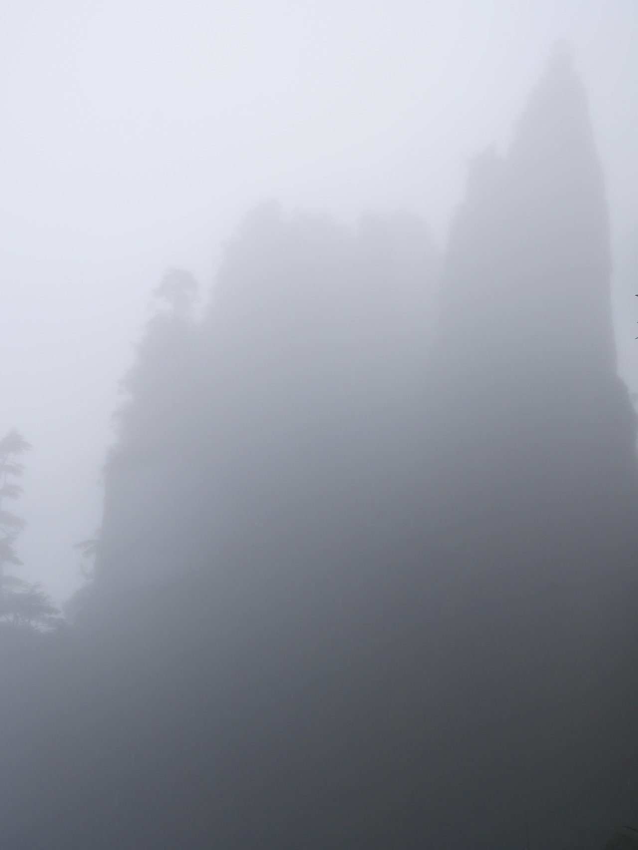 안개 속에 희미하게 보이는 신비스러운 풍경.