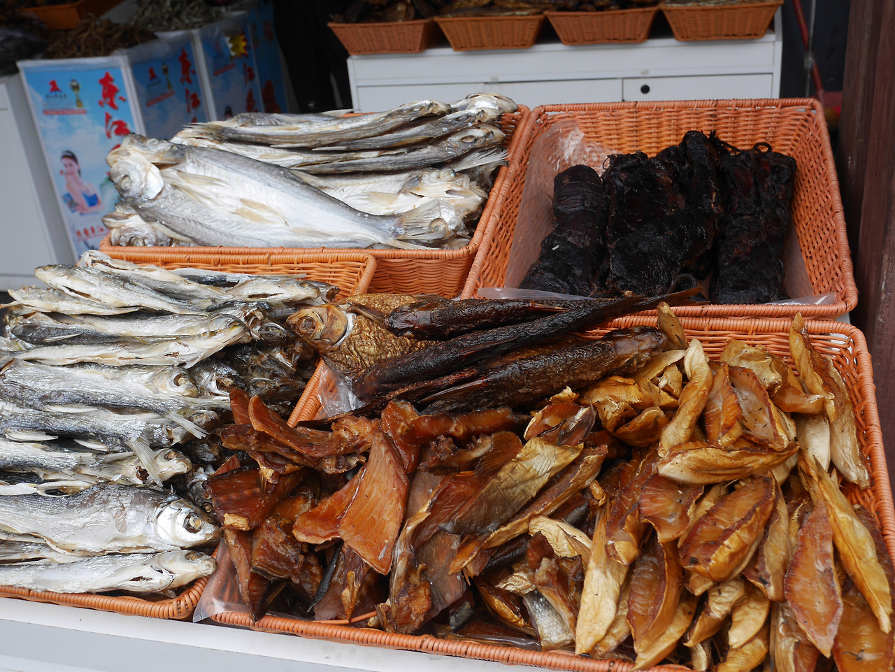 선착장의 가판대. 이곳 주민들은 말린 생선을 즐겨 먹는 듯.