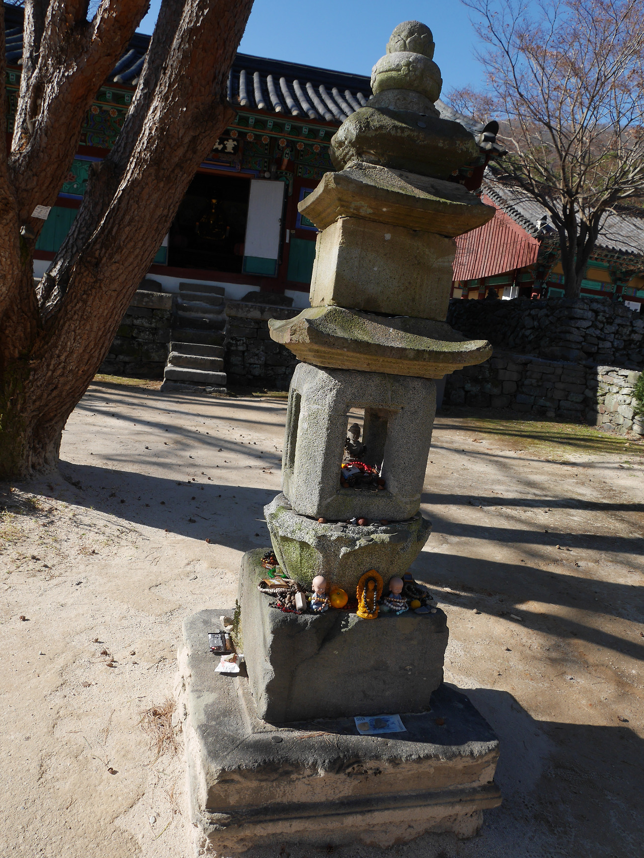 차에서 내리니 첫눈의 잔설이 절 마당에 희끗희끗 남아 있었다.