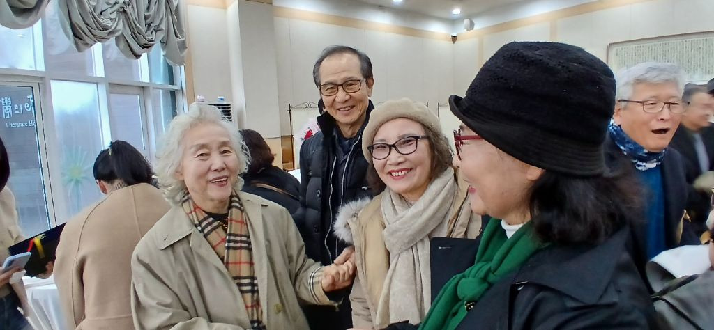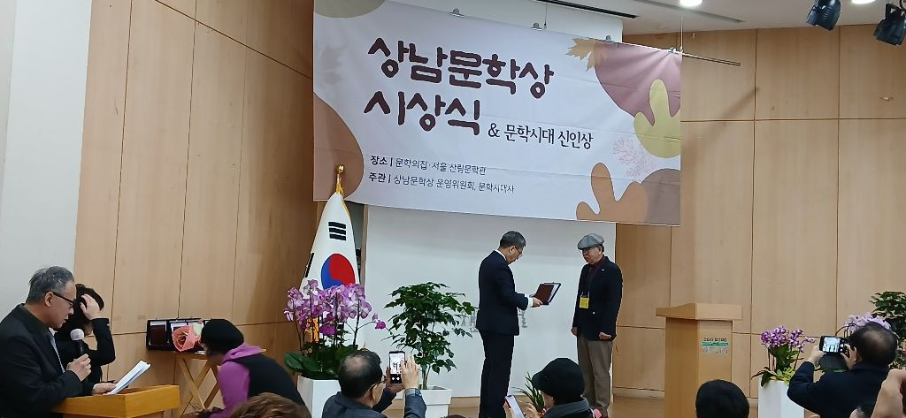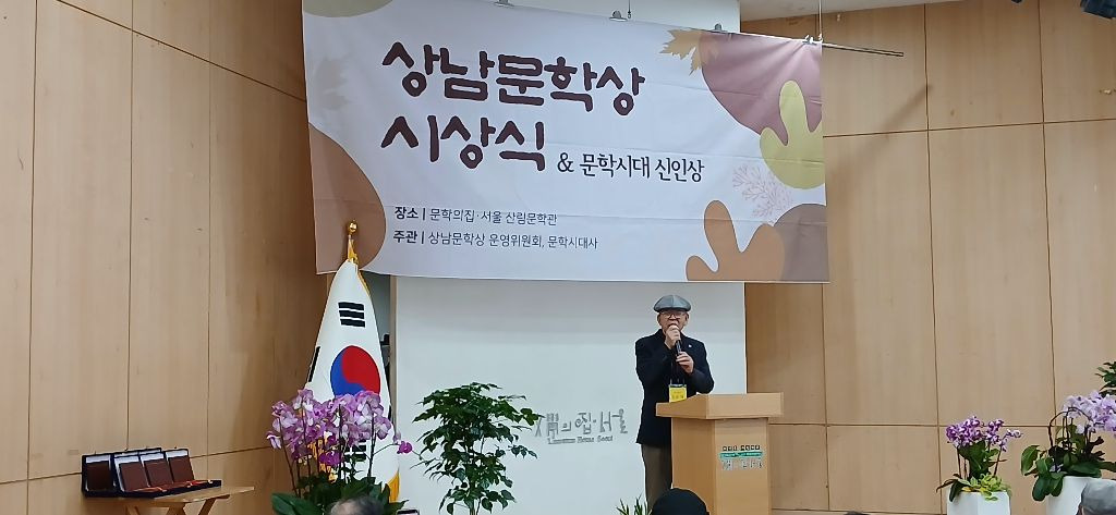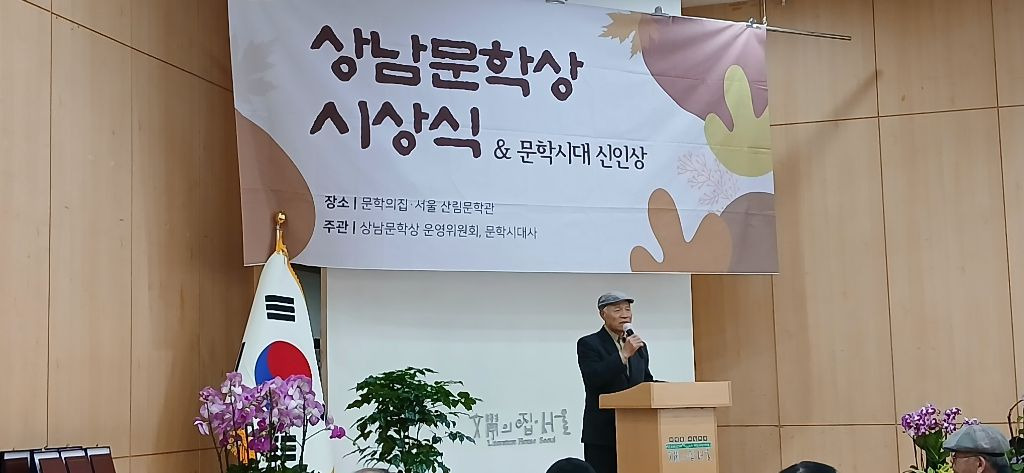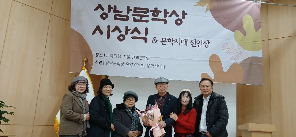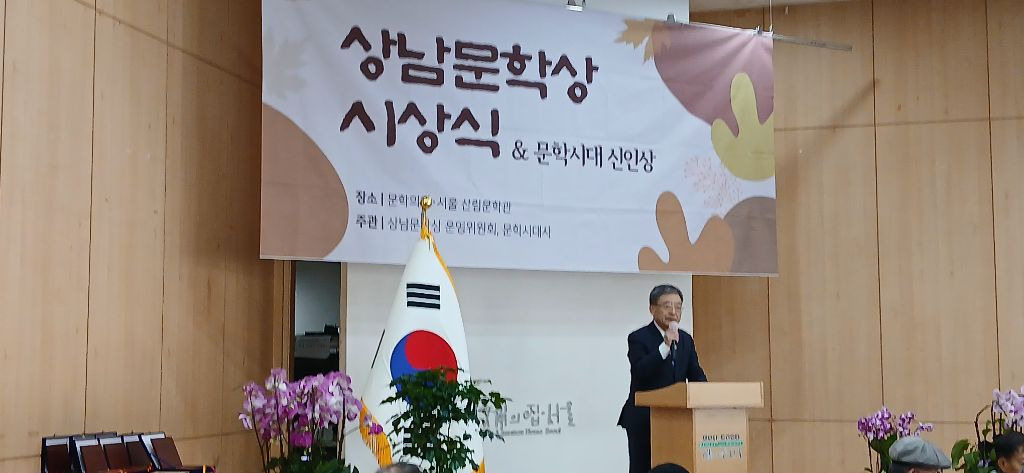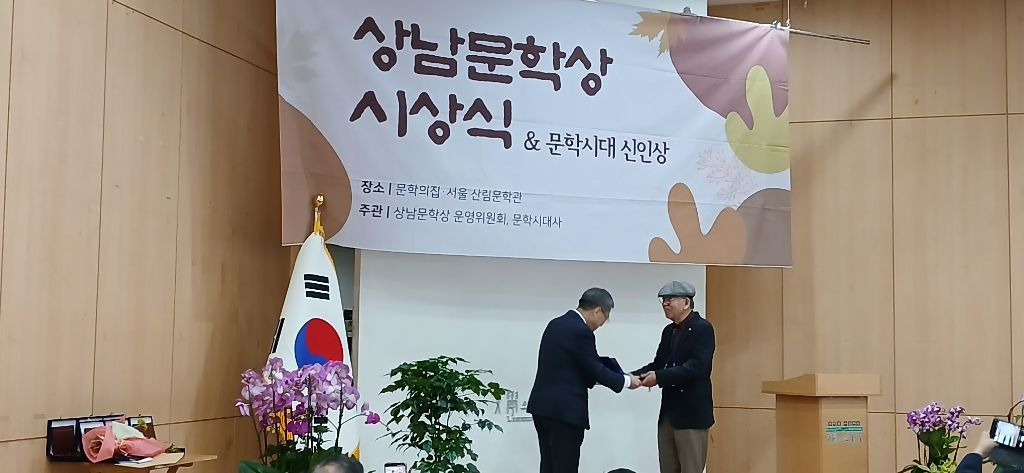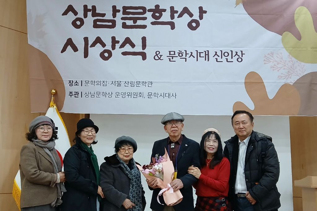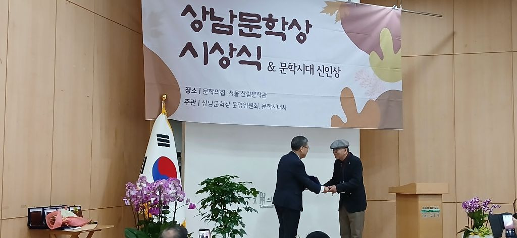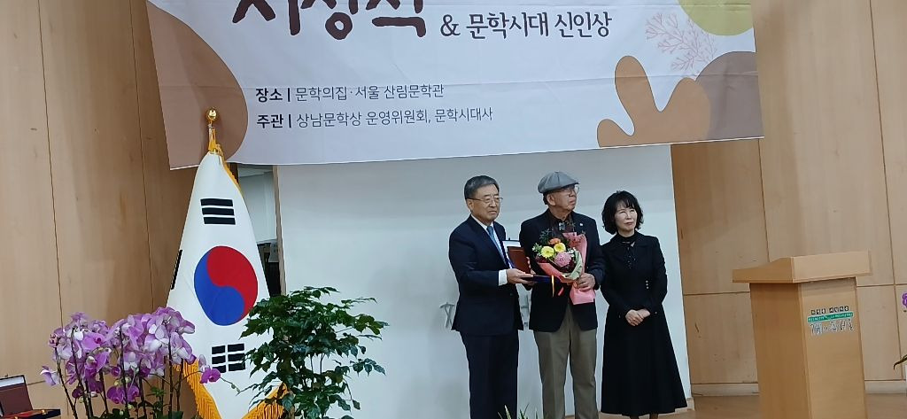 제 3회 상남문학상 때: 2025. 12. 9 곳: 문학의 집.서울 주최: 상남문학상운영위원회. 문학시대사 우리 수필방 동호인이자 대선배이신 석촌님의 제 3회 상남문학상 수상식장에 참석하였다. 남산 아래에 포근히 자리잡은 <한국문학인의 집>을 찾아갔더니 벌써 많은 문인들과 축하객으로 문전성시를 이루고 있었다. 2시 국민의례를 시작으로 이광복 소설가이자 운영위원장의 개식사. 시인 권용태. 시인 허영자의 축사에 이어 심사평. 석촌 김난석의 수상소감. (수상작 시집 <대숲 속 바람이듯>) 김다윗의 다향 대금 축하연주 제2회 수상자이신 박종철님의 축하의 말로 마무리한 상남문학상 시상식이 거행되었다. 식이 끝나고 석촌님과 축하인사 나누고 기념사진도 찍고 그냥 헤어지기 서운하여 남산 한옥마을 아래 찻집에서 차 한잔 나누고 헤어졌다. 집에 돌아와 상남문학상 검색을 해보니 상남동과 인연을 맺은 성춘복 선생을 기리기 위해 창원(마산)- 상남동과 인연이 있거나, 지역 문학 발전에 기여한 문인 및 신인 작가에게 수여하는 상이라고 하였는데 맞는지 모르겠다. 창원은 내고향 마산을 통합한 도시명이어서 더욱 관심이 가는 문학상이고 이날 평소 좋아하였던. 행복. 나팔꽃. 감. 완행열차. 손. 밤기도 등의 허영자 시인을 만나 짧게나마 인사 나눌 수 있어 더욱 뜻깊은 시간이었다. |
