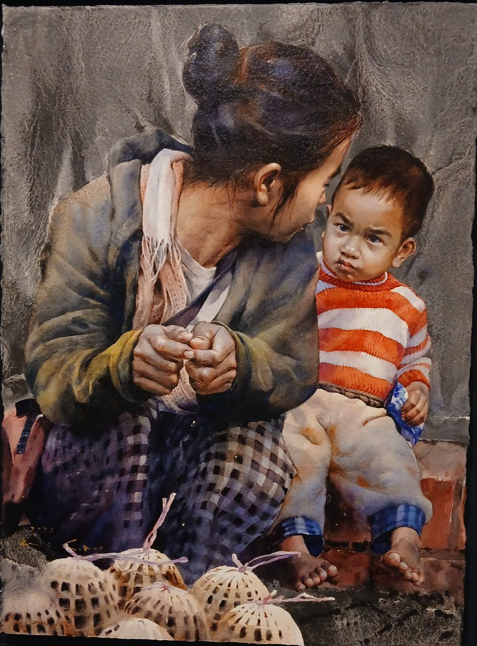 아기에게 젖을 물린 여인. 행상을 하는 여인의 모습 등