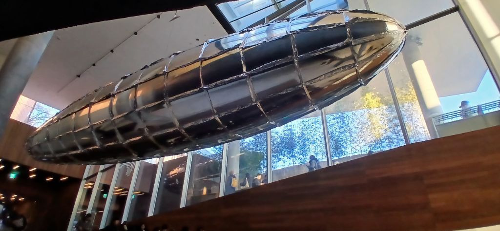 전시장을 나오면서 하늘을 유영하는 우주선같은 이 작품을 한 장 더 찍었다.