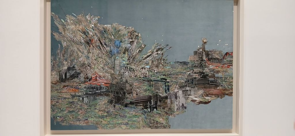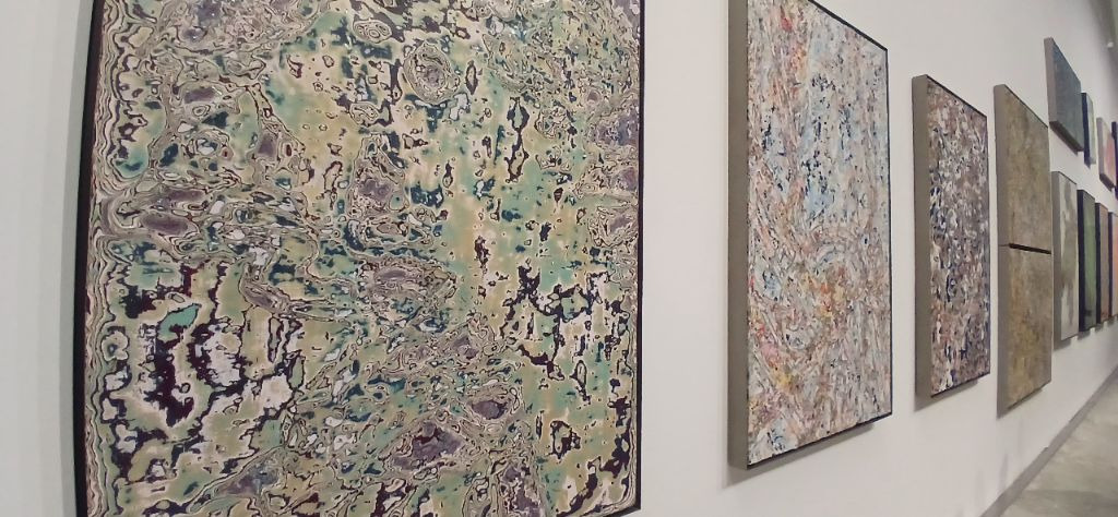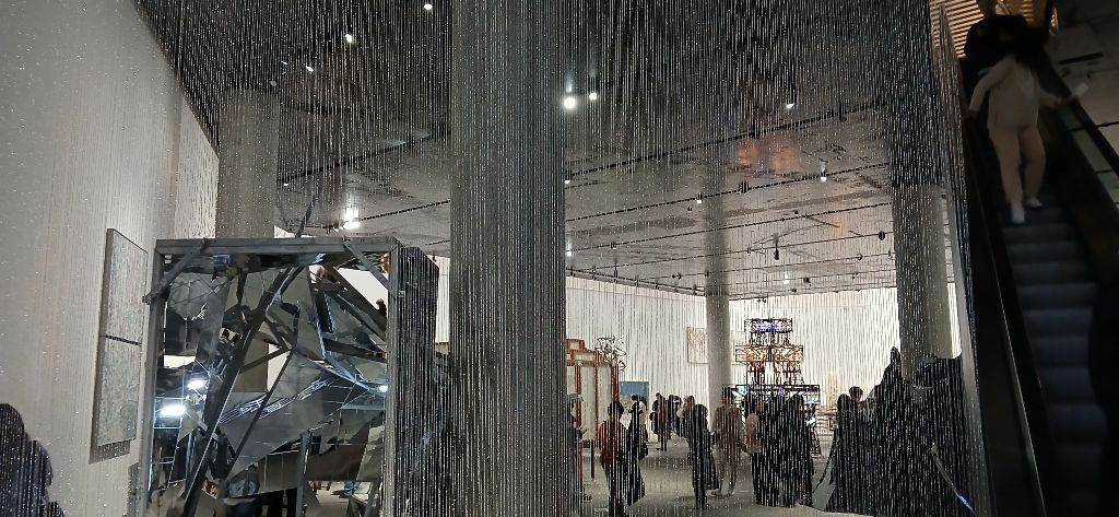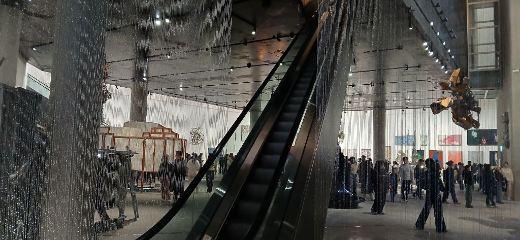 아래에 있는 다양한 회화와 커다란 설치미술 작품 등을 바라보면서