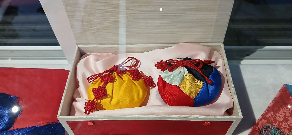 청색 홍색 실로 묵은 사주 보자기 등을 구경하면서