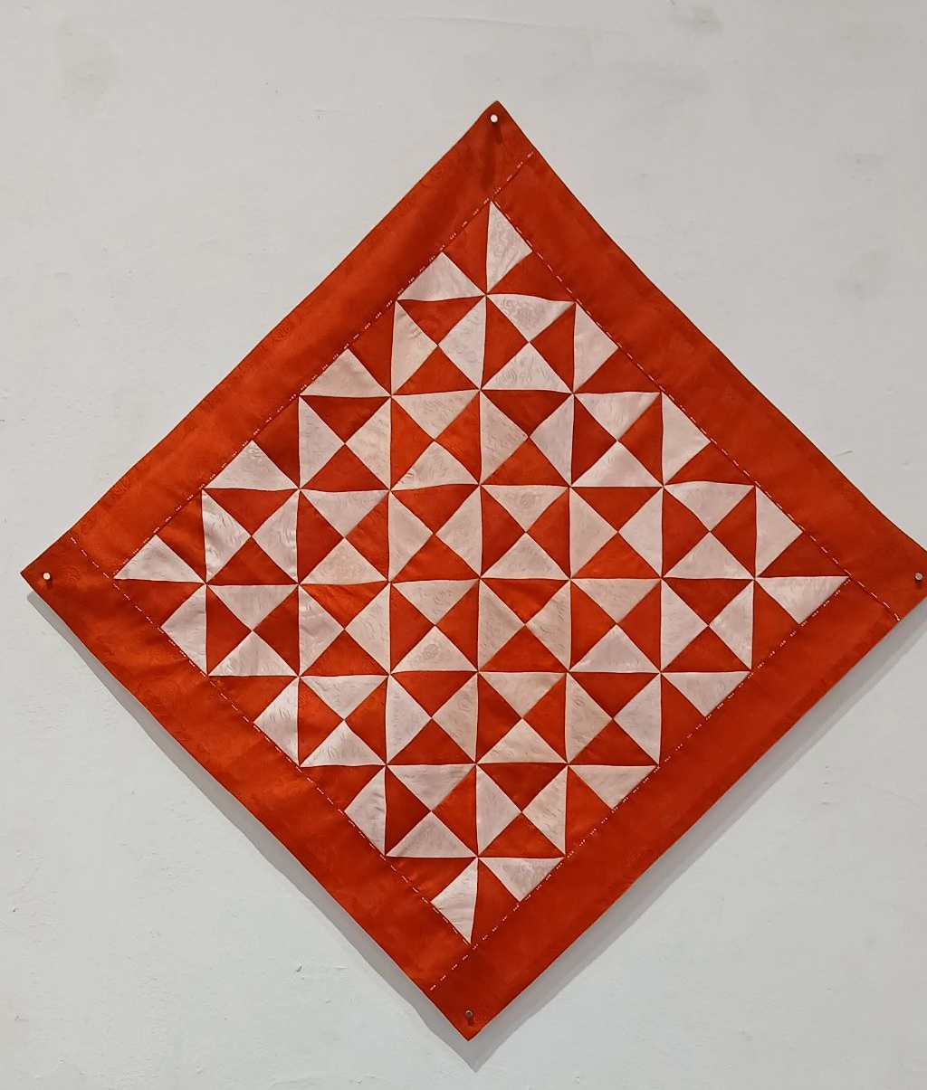 자투리 천을 이용한 조각보. 금박 무늬의 사각보.