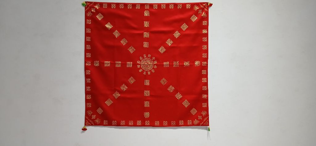 모시 금박 보자기. 붉은 색 채단 보자기는