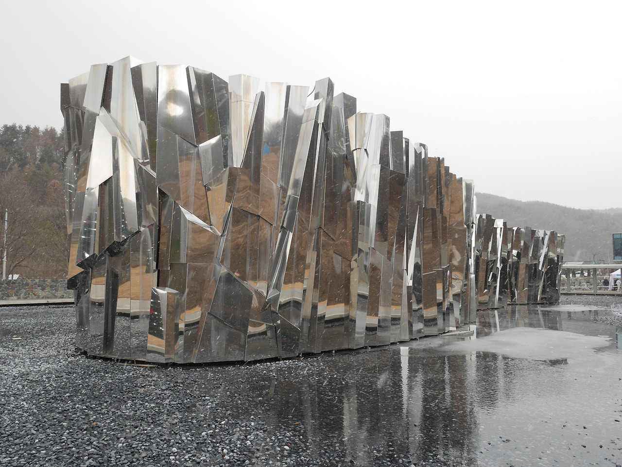 월간지 전시가이드 책자에서 원주 빙하미술관이 개관하였다는 소식을 읽었다. 원주에는 안도 다다오가 설계한 <산무지엄>이 있는데, 이번에 또 <빙하미술관>이 개관한 모양이다. 미끄러운 빙벽처럼 보이는 그 미술관이 궁금하였다. 대중교통으로는 가기 어려울 것 같아 친구에게 부탁하여 준비도 없이 갑자기 찾아간 날은 아침부터 어린 눈발이 휘날렸다. 불쑥 눈 앞에 나타난 빙하미술관은 얼깃설깃 세워진 빙벽 같았다. 아래서 바라보니 스테인리스 외벽에 주위의 풍경들이 반영되어 있었다. 넓은 주차장에 차를 주차시키니 휭하니 바람이 몰아쳤다. 얼른 입구를 찾아 들어가니 현재 전시작 안내판이 세워져 있었다. 나는 안의 전시 내용보다 건물 자체에 관심이 많았으므로 현재 전시작은 무엇인지도 모르게 왔는데 미디어 아트 전시중이었다. 이런.... 나는 산뮤지엄처럼 회화도 있으리라 생각했는데 완전 기대 밖이었다. 요즘 스스로 현대미술 방면에도 관심을 갖기로 하여 여러 전시장을 찾아 다녔지만 아직은 회화가 가장 편하고 좋다. 이왕 이곳까지 왔으니 싫으나 좋으나 전시장을 둘러 보아야지.... 경로할인을 적용받아 입장권은 1만원(성인. 12000원) 공식 개관전 블랙을 넘어 : 빛, 시간 그리고 기억. 비디오 아트 선구자 알도 탐벨리니(1930~2020. 미국) 태국의 현대 미술가 카먼 르차이프랏싯(1964~) 디지털 아티스트 이이남(1969. 한국) 세 작가의 작품을 전시하고 있었다. 이이남은 오래전 담양 죽녹원에서 부터 시작하여 여러 현대미술관에서 작품 전시를 보았기에 낯익은 이름이지만, 다른 두 사람은 처음이었다. 안내 데스크에서 챙겨온 세사람의 리플릿이 있으니, 다음에 차근히 읽어 보겠다는 마음으로 전시장 안으로 들어 갔다. 이곳저곳 전시된 3 작가의 작품을 들여다 보았으나, 역시 나에게는 다가갈 수 없는 분야인 것 같아 그냥 이런 작품이 있구나....하는 마음으로 들여다 보았다. 이런 미디어아트를 전시하는 공간이 없으면 이 작품은 어디다 보관할까? 계속 전시한다면 화면이 낡아 눈이 어지럽지 않을까? 하는 유치원 아이같은 수준으로 전시장을 나왔다. 밖으로 나오니 바람이 심하게 불어 모자가 휘익 날아갔다. 미술관 옆 햇살 좋은 곳에서 군고구마를 무료로 나누어주었다. 군고구마를 가방에 넣으니 마음도 따뜻하게 익어 가는 것 같았다. 미술관 스테인리스 외벽을 빙돌며 여러장의 사진을 담았다. 얄팍한 물위에 세워져 있는 건물은 역시 마음에 들었다. 일기예보에 의하면 오늘 오후부터 많은 눈이 예상된다고 하여 박경리 문학관과 사진 정원을 보기 위해 길을 재촉하였다. * * * 설명서에 의하면 물 위에 떠있는 외벽은 시간과 자연의 흐름에 따라 끊임없이 변하는 예술적 풍경을 담아냅니다. 전시 공간은 지하 1층(975㎡, 층고 6.8m)과 지상 1층(339㎡, 층고 3.6m)으로 구성되어 있으며, 일반적인 화이트큐브 구조와 달리 곡선과 직선이 조화를 이루어 리듬감 있는 공간을 연출합니다. 라고 하였다. |
