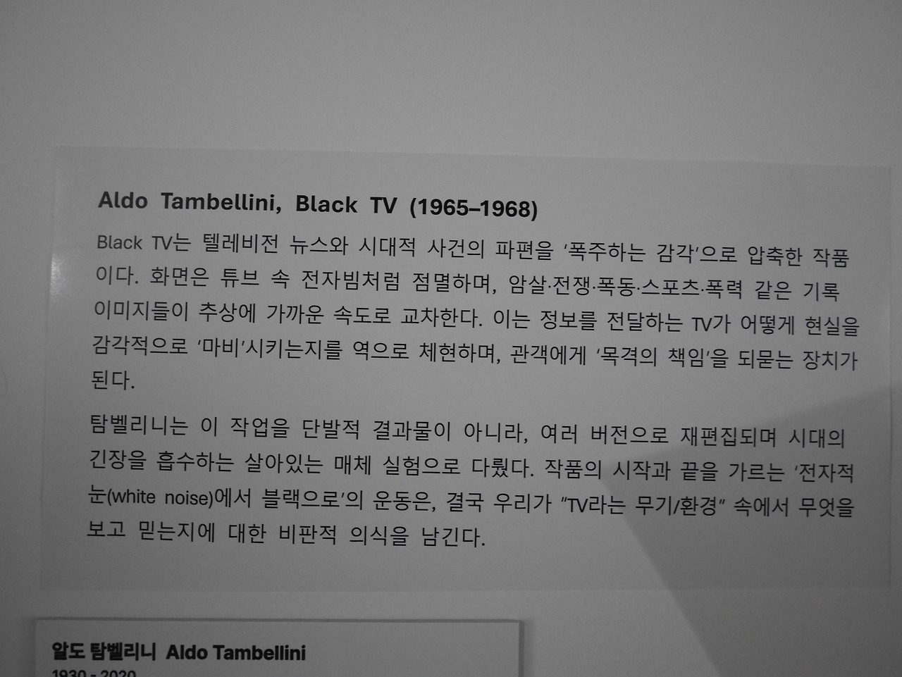 미디어 아트의 선구자 알도 탐벨리니(Aldo Tambellini, 1930–2020)의 급진적 예술세계를 중심으로, 태국의 카민 르차이프라싯(Kamin Lertchaiprasert)과 한국의 아티스트 이이남(Lee Lee Nam)의 실감형 미디어 작품을 함께 선보이는 이번 전시는 탐벨리니가 평생에 걸쳐 탐구한 모든 색의 총합인 ‘블랙’의 철학과 전위적 실험을 깊이 있게 조명하는 동시에, 동시대 예술가들이 기술과 미디어를 통해 열어가는 새로운 감각의 지평을 탐구하는 장을 마련한다.