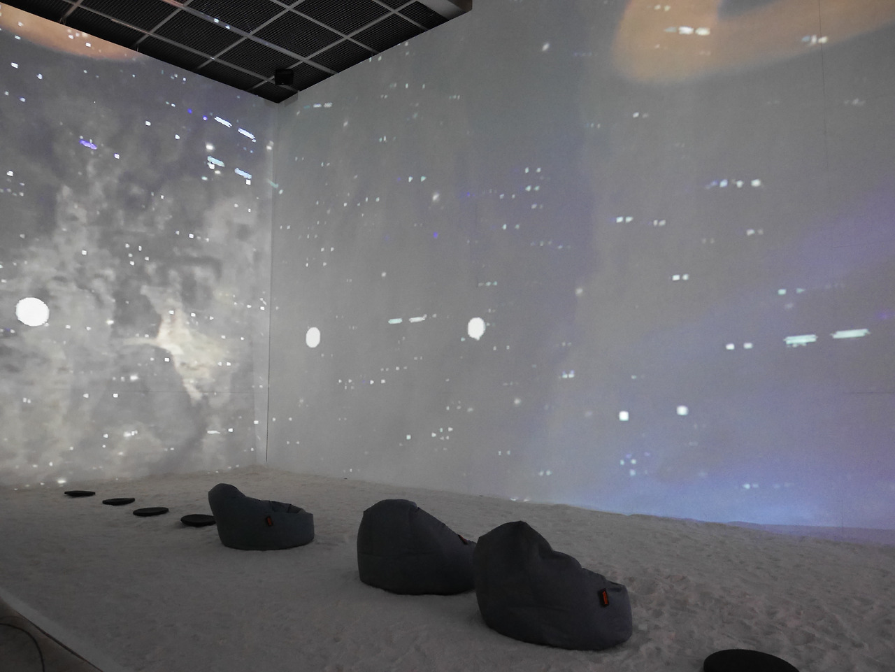 실감형 전시장에서는 탐벨리니의 작품과 더불어 카민 르차이프라싯과 이이남의 미디어 작업이 교차 상영된다. 카민은 불교 철학과 명상에서 영감을 받아 삶과 죽음의 본질을 다뤄온 작가로, ⟨After Death Before Next Birth⟩은 언리얼 엔진과 공간 오디오 기술을 활용해 관람객을 삶과 죽음의 경계로 이끈다. 이 몰입형 환경은 관람자가 자신의 존재와 유한성에 대해 깊이 성찰하도록 하며, 실감형 미디어의 기술적 잠재력과 철학적 깊이를 극대화한다.