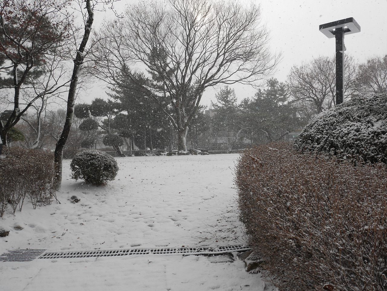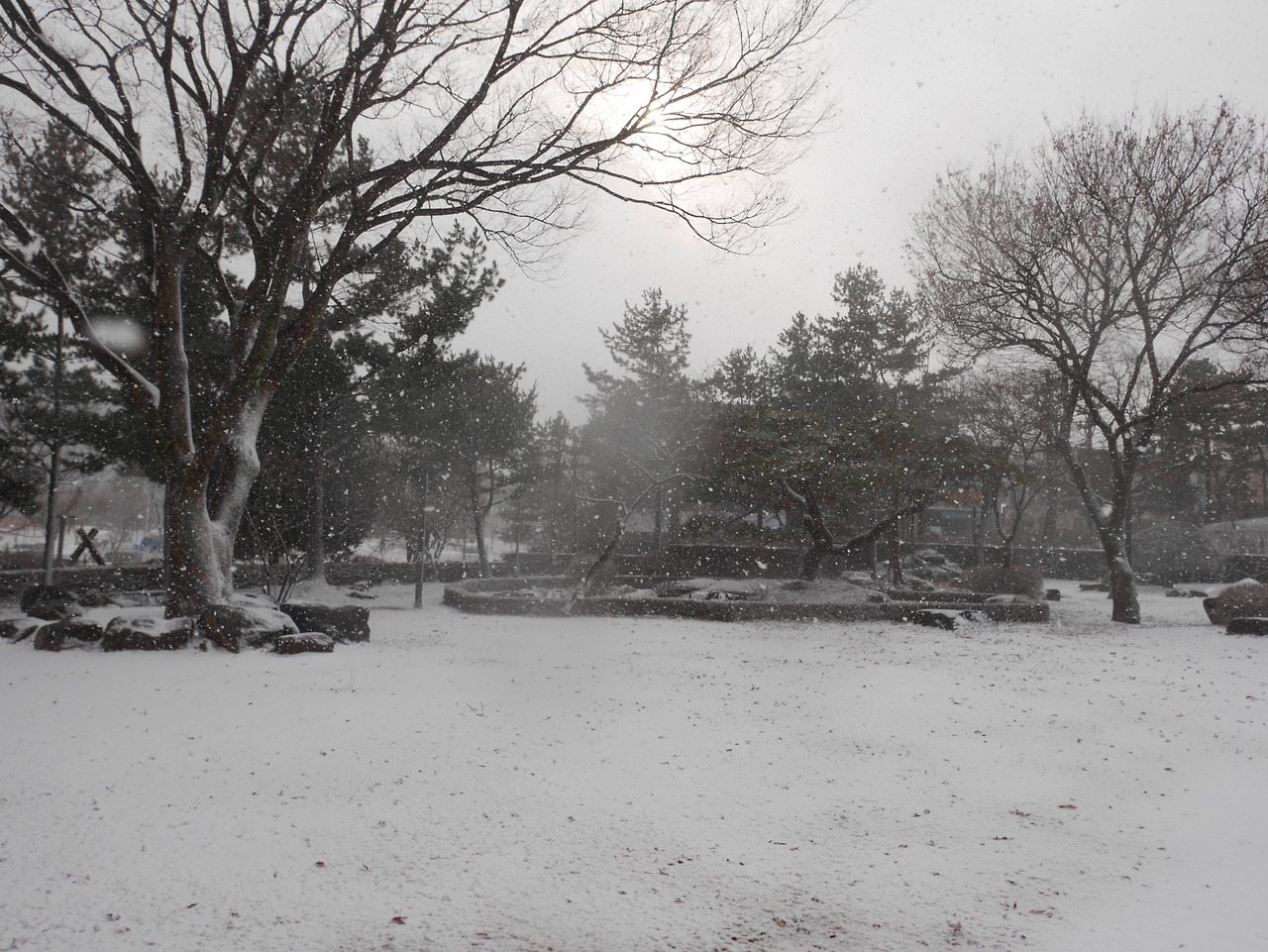 흩날리던 눈송이는 점점 굵기가 커져 어느새 하얀 세상으로 변하였다.