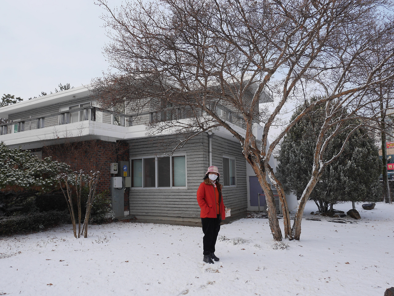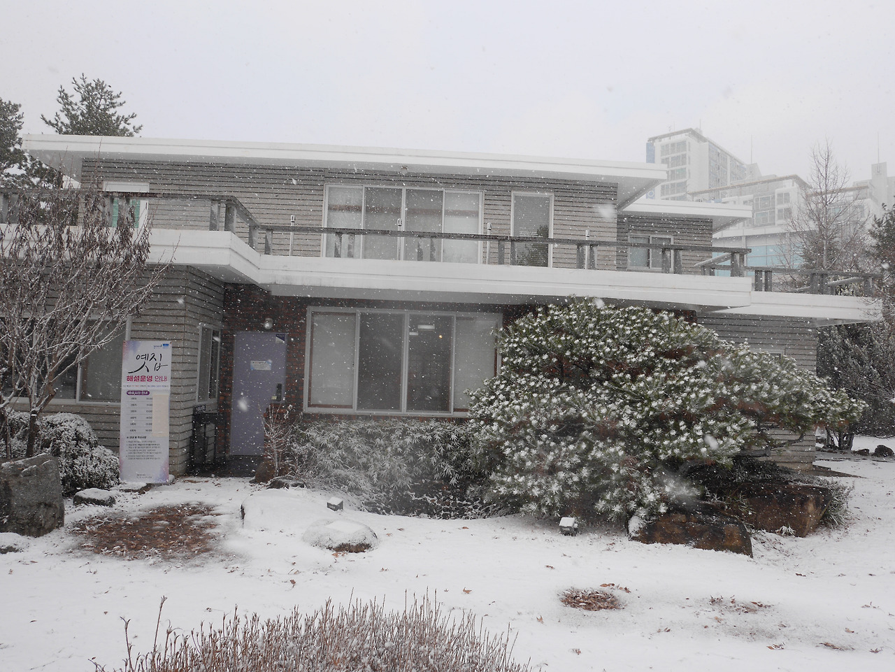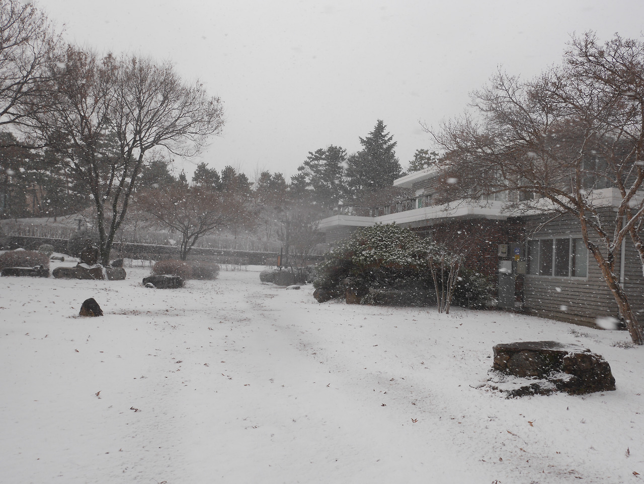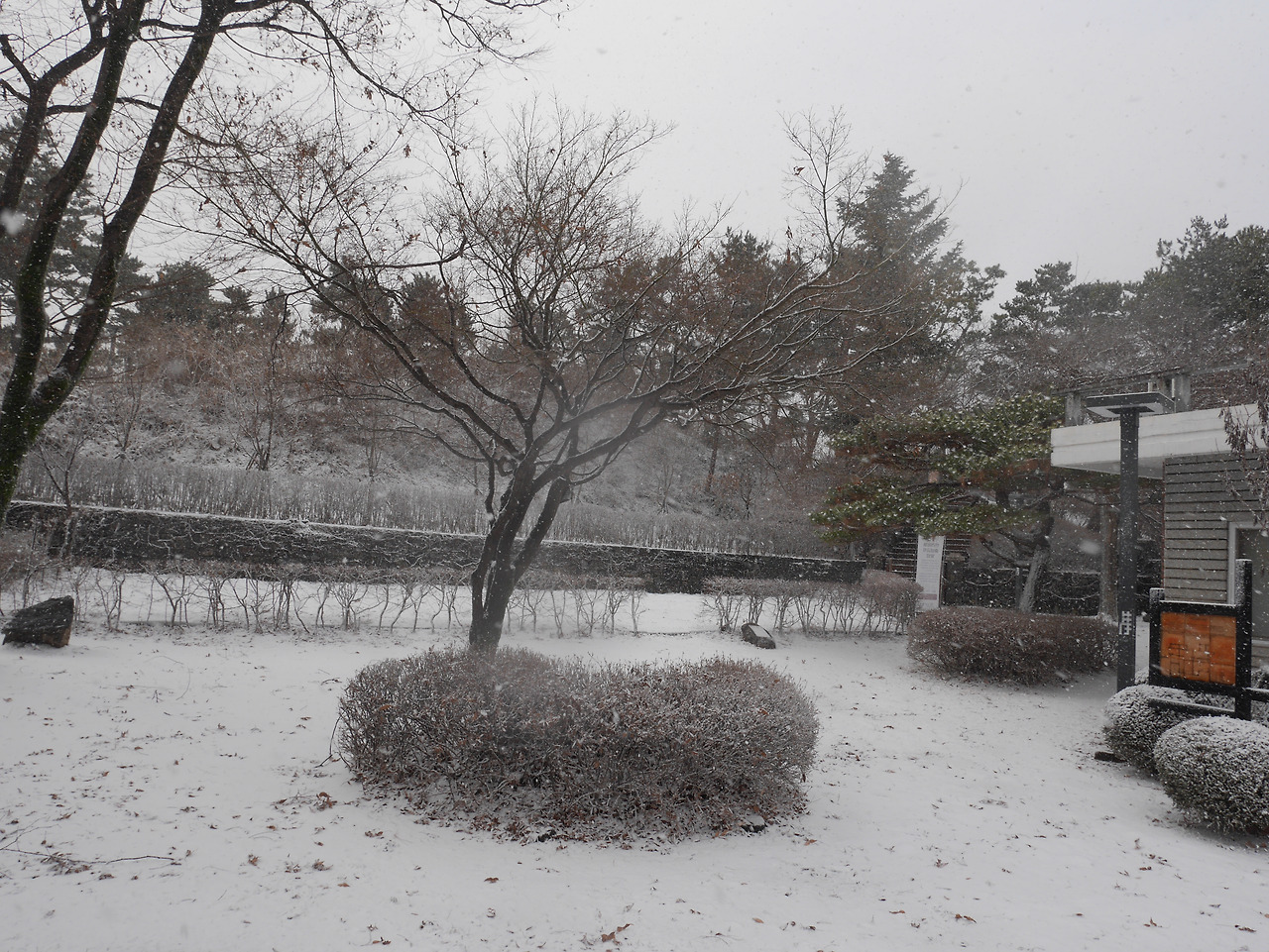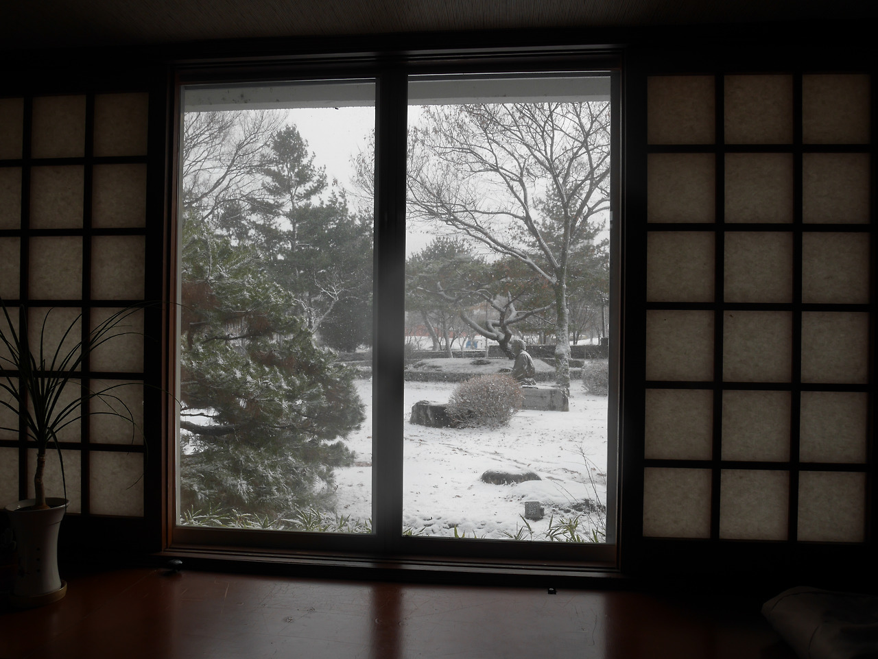 인사를 하고 나오니 하얀 눈으로 가득 덮인 정원모습에