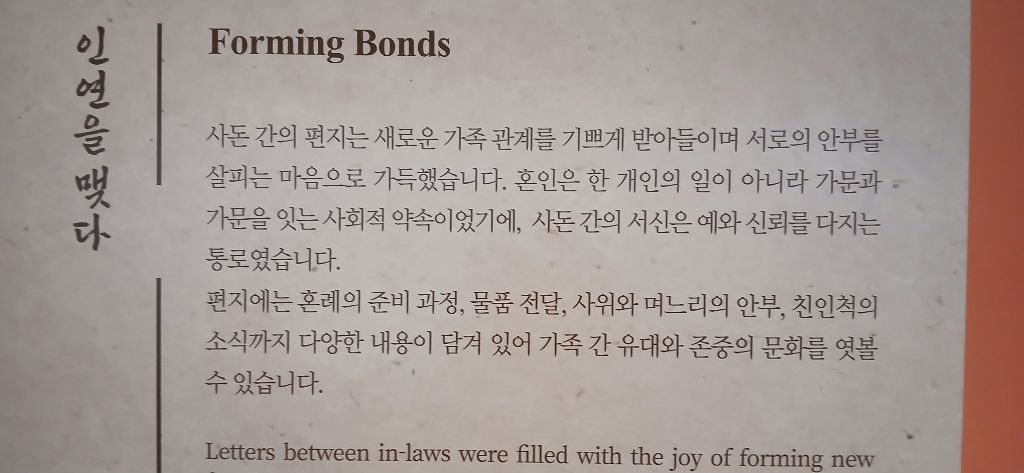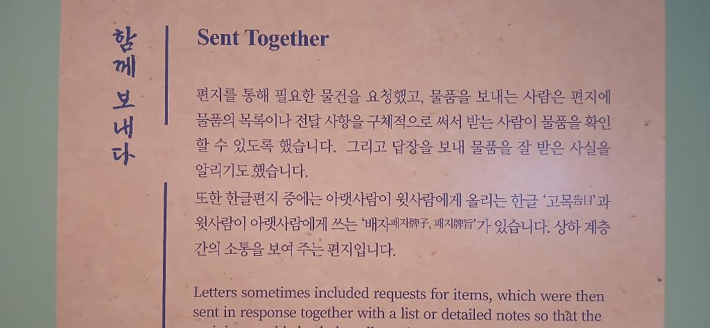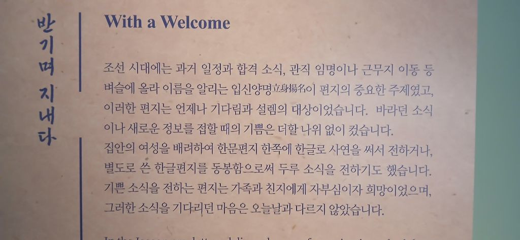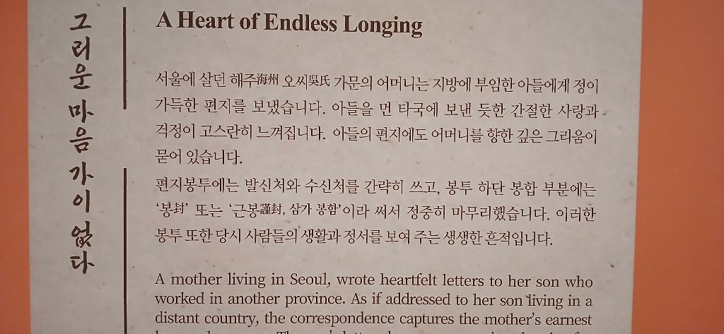한글편지, 문안 아룁고 2025. 12. 10.~ 2026. 3. 2. 서울역사박물관 기획전시실 B 서울역사박물관에서 박물관 개관을 준비하였던 시기부터 기증받는 고문서 중 한글편지들을 정리, 연구하여 한자리에 모은 한글편지 전시회를 하고 있었다. 요즘은 인터넷으로 세계 여러나라와 실시간으로 소통하는 시대여서 손으로 쓰는 편지는 귀한 시대가 되었다. 불과 반세기 전만 하여도 편지로 소통하였눈데 비하면 정말 격세지감이 든다. 이번 전시는 *편지를 쓰다 *편지를 읽다 *편지를 보존하다3부분으로 구성되어 있다. *편지를 쓰다 조선시대는 편지를 간찰이라 부르며 안부와 소식. 용무를 전하는 문서였다. 한글로 쓴 편지는 언문간찰. 내간, 언찰 등으로 불리었다. *편지를 읽다 한글편지는 안부, 축하, 위로를 나누는데 그치지 않고, 정확한 정보를 전달하는 실용적인 역할도 했다. 언간독은 편지 쓰는 법을 익히기 위한 한글 간찰 서식집이다. *편지를 보존하다 총 754명의 시민 여러분의 소중한 73000건의 기증으로 수집된 자료를 오래동안 보존하고 새롭게 조명하기 위해 노력한다. * * * 나도 젊은 시절 주고 받은 편지가 한 박스 그대로 남아 있다. 창고 속에 보관하여 꺼내 볼 생각도 하지 않았지만 내가 죽기 전 모두 불태워 없애야겠다는 생각을 하고 있다. 학창 시절 같은 반 친구에게 보냈던 편지. 지리산 등산지에서 만났던 3살 아래 한양대 공대 학생과 몇 년을 주고 받았던 편지. 우연히 내가 잡지에 기고한 글을 보고 미국 워싱턴 주립대학에서 유학하였던 지금은 이름도 기억나지 않은 남학생과의 펜팔. (우편료 부담을 들어주기 위해 쿠폰까지 보내주셨던 분이다) 종교가 달라 결혼에 이르지 못하였던 울산현대중공업에 근무하였던 김00와 3년 동안 왕래하였던 편지. 언젠가 봄햇살 좋은 날 한 장씩 꺼내 읽어 보고 불태우리라. |