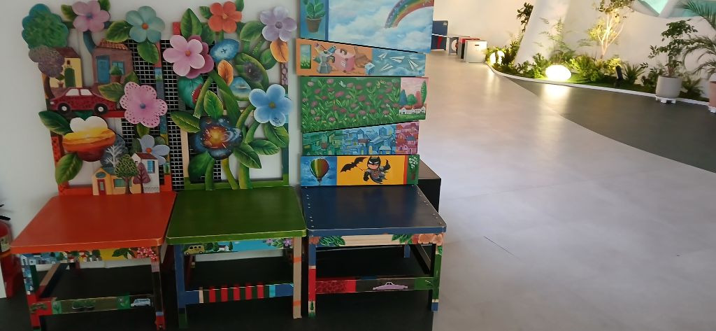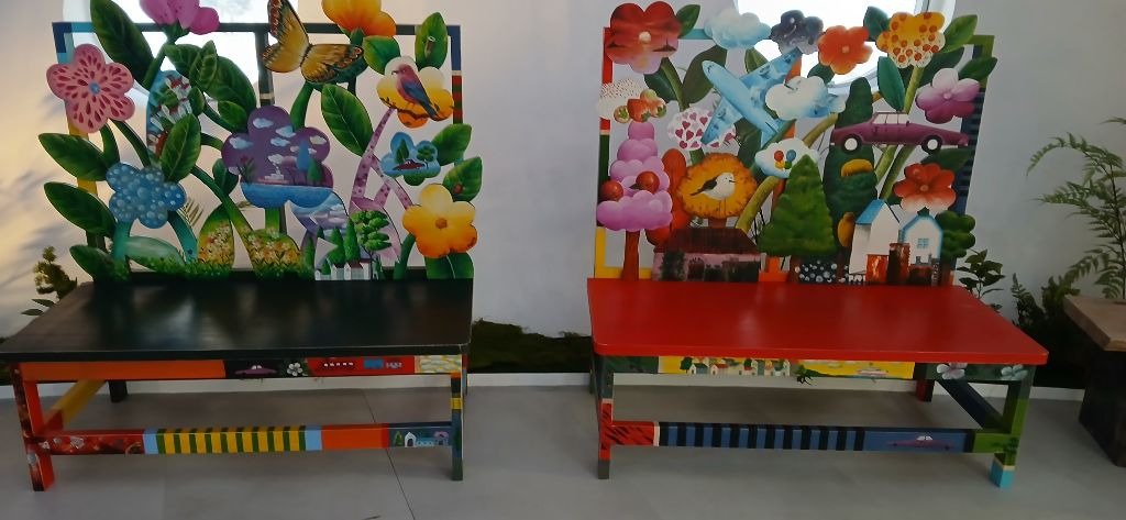 멕시코를 연상시키는 알록달록 꽃무늬 의자.