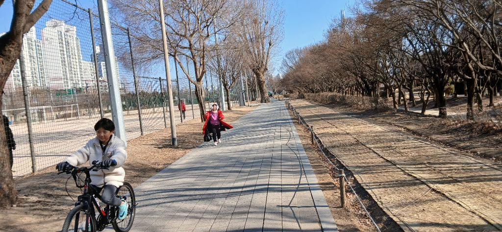 뜀발질하고 자전거를 타는 어린이들을 바라보니